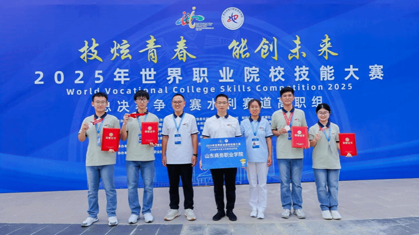 在教师们的辛勤耕耘下,搭建“专业—学校—省级—国家”四级递进竞赛体系,以赛促学、以赛促教成效显著,近年来学生在多项大赛中取得傲人成绩∶学生在全国职业院校技能大赛中获一等奖8项、二等奖6项,省级职业院校技能大赛获特等奖2项、一等奖10项、二等奖14项,省级创新创业大赛二等奖2项,铜奖3项。2024—2025年,学院学生团队在世界职业院校技能大赛水利赛道水利工程BIM建模与应用赛项中先后斩获金奖、银奖。2025年,学院学生在全国装配化装修职业技能竞赛中斩获二等奖。2024年在首届全国大学生职业规划大赛总决赛中,工程造价专业学生宣青山斩获职教组就业赛道铜奖。2023年在第十六届全国大学生结构设计竞赛中,建筑工程学院学生勇夺国赛一等奖,我校成为契机为止山东省职业院校唯一在该项目国赛中获奖的学校。在建筑产业前沿科技赛事中,建筑工程学院学子屡获佳绩,获得山东省BIM建筑装饰技术大赛特等奖、虚拟设计大赛一等奖、山东省智能建造大赛一等奖等。省内外10余所院校先后来我院交流学习,通过大赛成绩和宣传效应逐渐树立专业品牌,不断增强专业影响力。