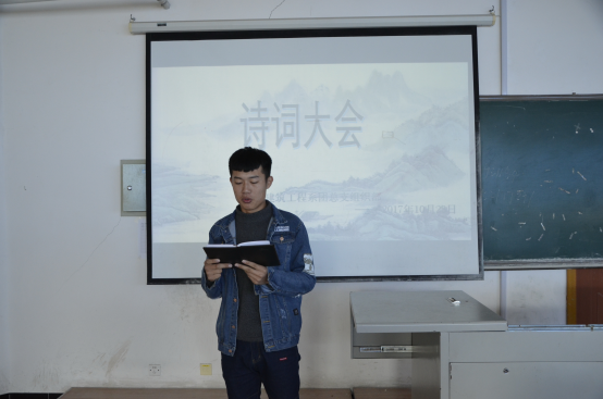 十九大胜利召开之际,建筑工程系为更好的传承中国经典文化、弘扬爱国情怀,建设文化校园,于10月22日,在图书馆111室举办“不忘初心跟党走,传承经典谱新篇”诗词吟诵会。同学们用饱含深情的朗诵,表达了对祖国的热爱,也用行动,庆祝党的十九大召开。