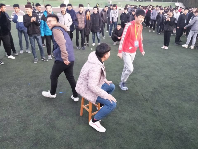 本次趣味运动会主要设置了六人七足、抢凳子、螃蟹赛跑、踩气球、扔沙包等5个项目。活动当天的天气稍不如意,虽寒意浓浓,但同学们依然兴致盎然,大家下了课就很快来到比赛场地。各参赛小队赛前积极熟悉比赛规则,争分夺秒磨练比赛项目。在六人七足的比赛中,各队展现了默契的协调配合能力和优秀的团队凝聚力,比赛中队员们整齐划一,生怕因团队步伐有一点点不一致而影响速度;抢凳子项目考验的是参赛者的反应能力,谁反应的快谁就更容易抢到凳子;其他项目中也是充满了欢声笑语,大家玩的不亦乐乎。各班级在一旁加油鼓劲的同学们也是劲头十足,持续为场上队员们呐喊助威,场面十分热闹。