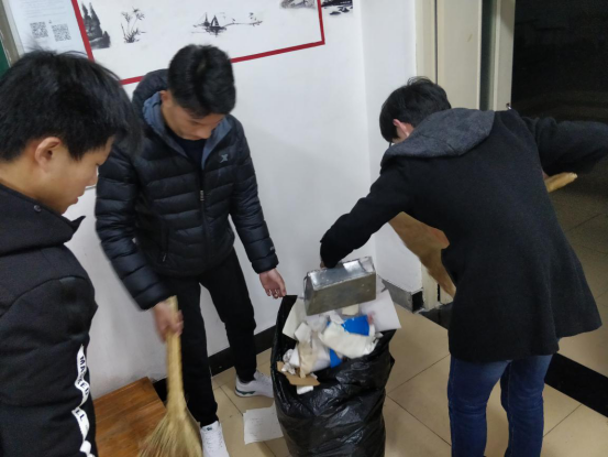 活动一开始,辅导员老师便对清扫工作做了分配,三支队伍带着笤帚、簸箕,抹布来到各自分管的不同区域,秉着不怕脏不怕累的信念,“撸起袖子加油干”,将桌椅板凳上字迹、污渍,卫生死角等“小怪兽”一一消灭干净。整个清扫过程历时了一个多小时,建筑系的义工和志愿者们虽满头大汗,看着自己的劳动成果——焕然一新的教室,却露出会心的笑容,给港城的春天增添了一抹青春与活力。
