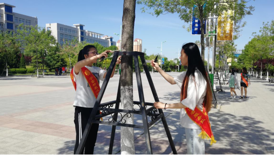 但随着活动结束,一些失去实效性的条幅撤除不彻底,便将布条等“红丝带”、胶带等“白色垃圾”留在路灯杆和树上。影响美观的同时也对学校的植被产生了破坏。为给全校师生创设一个舒适、漂亮、整洁的校园环境,6月8日,建筑系义工站组织开展了“撤掉‘红丝带’,美化校园”的义工活动。