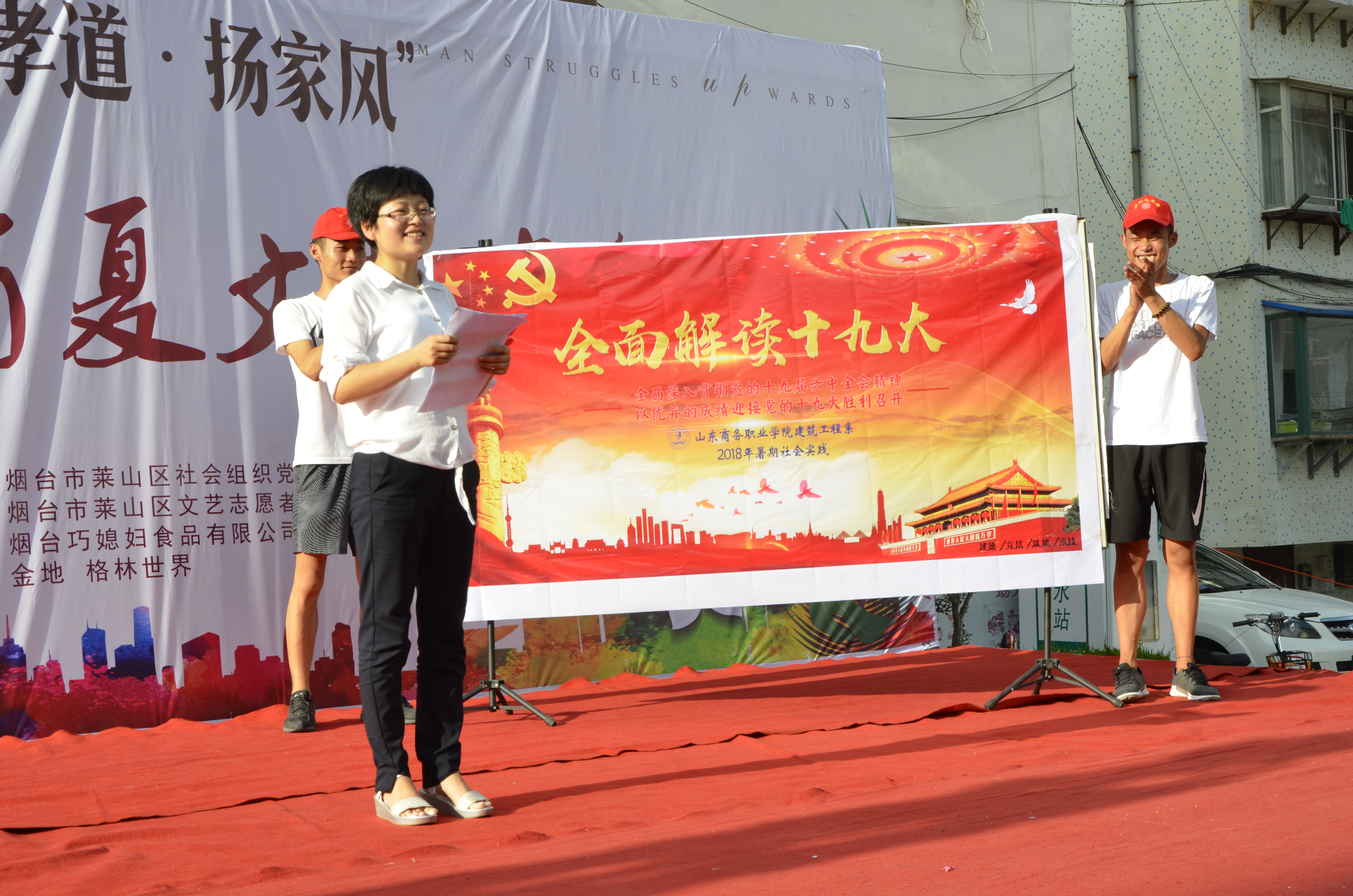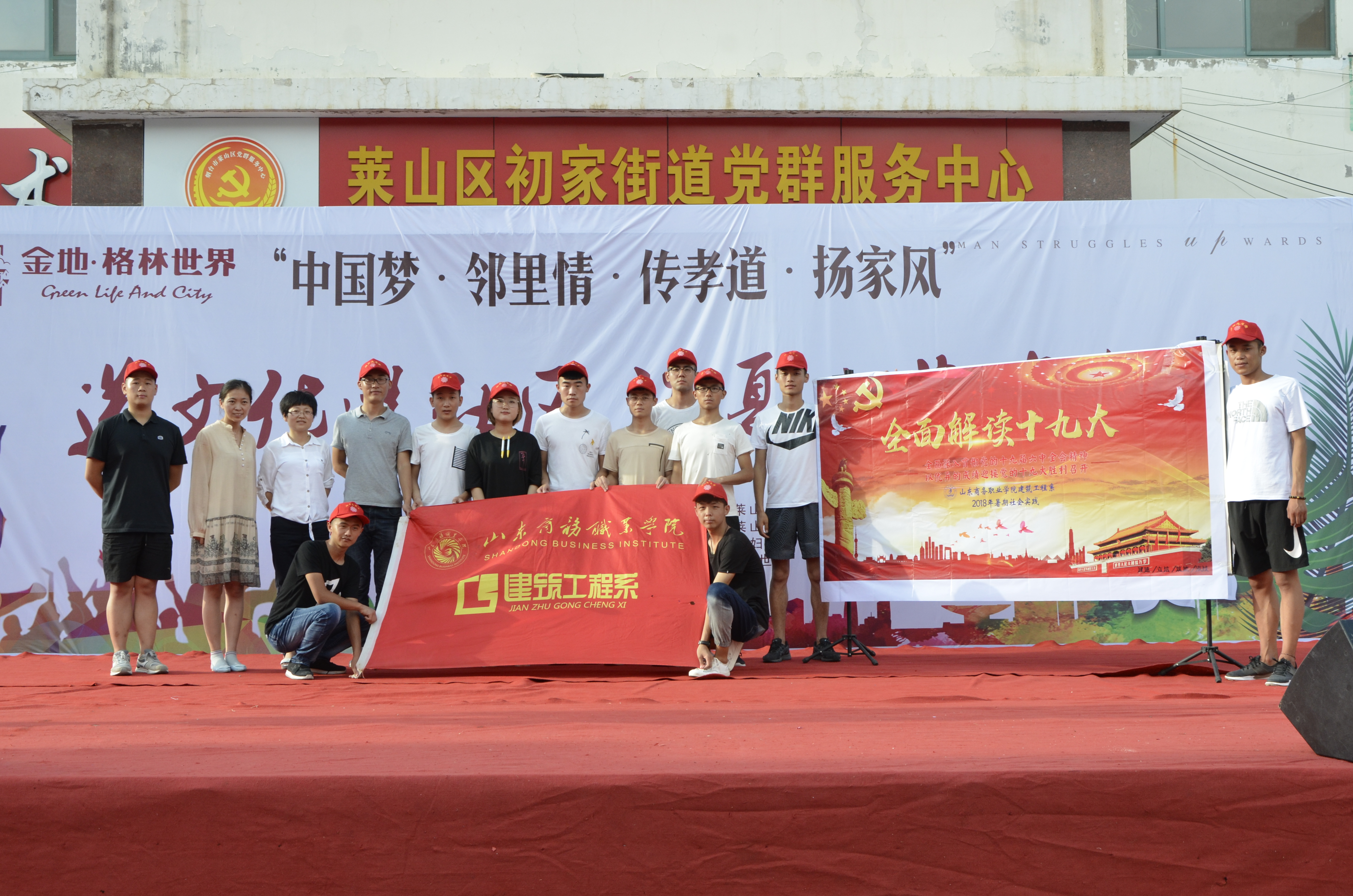 7月18日,商务建筑工程系理论普及宣讲队来到莱山区初家街道党群服务中心,开展了题为“新时代、新思想、新目标、新征程 全面解读十九大”的宣讲活动。