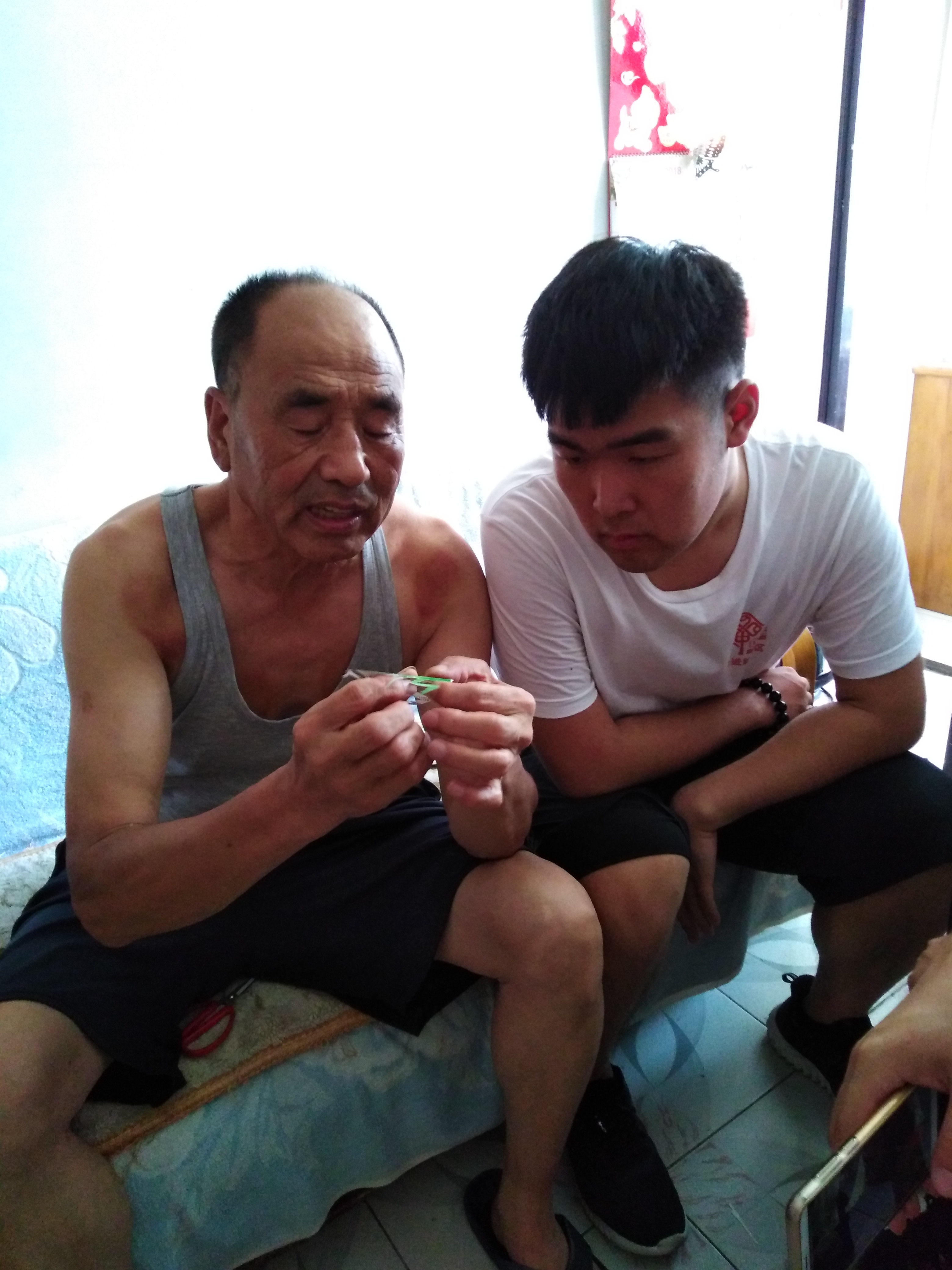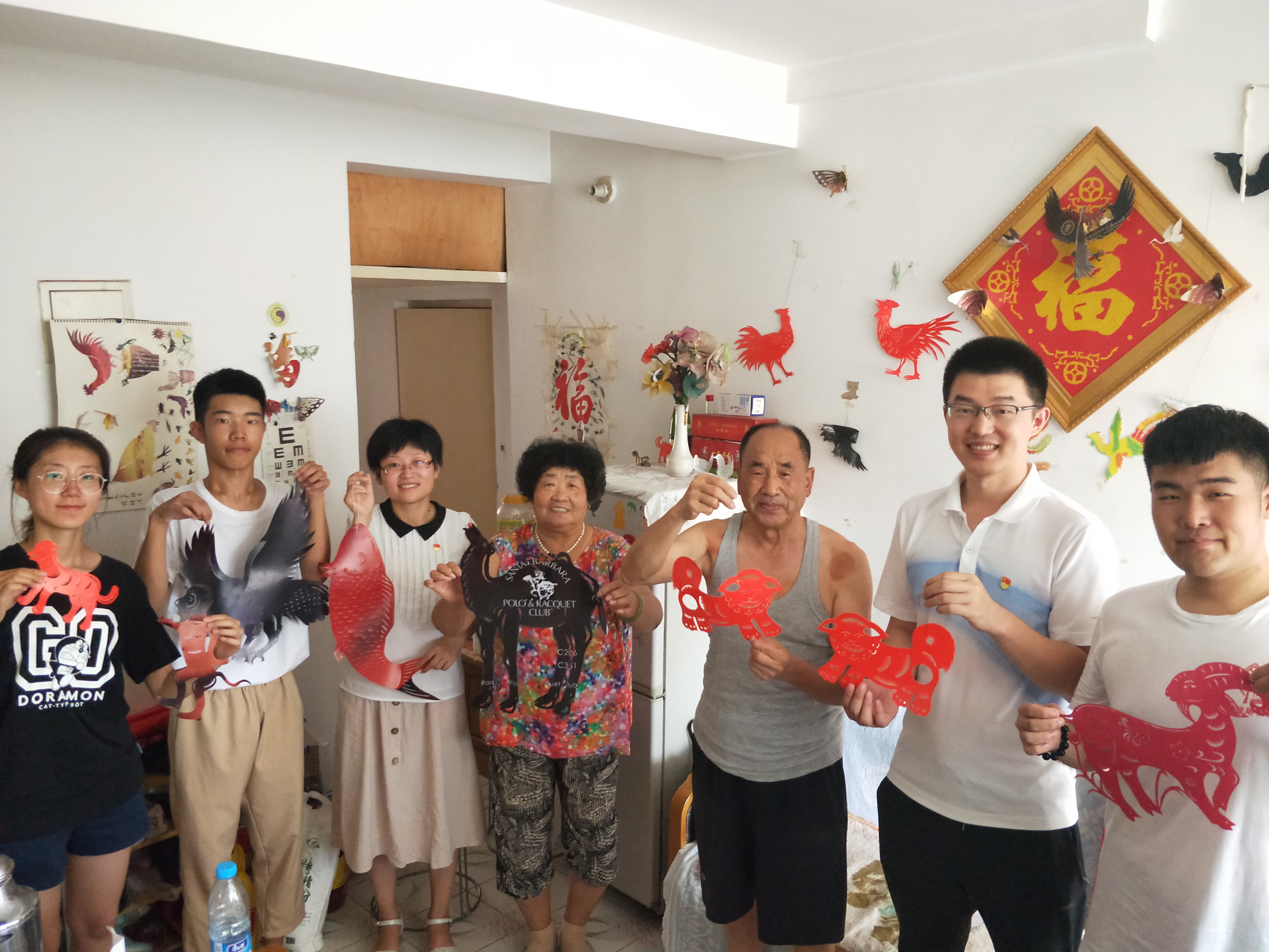 7月21日,经过前期寻找、后期沟通,获得剪纸艺人战经德老人的允许,建筑工程系文化艺术服务队来到战大爷的家里,进行实地手把手的剪纸技艺学习。