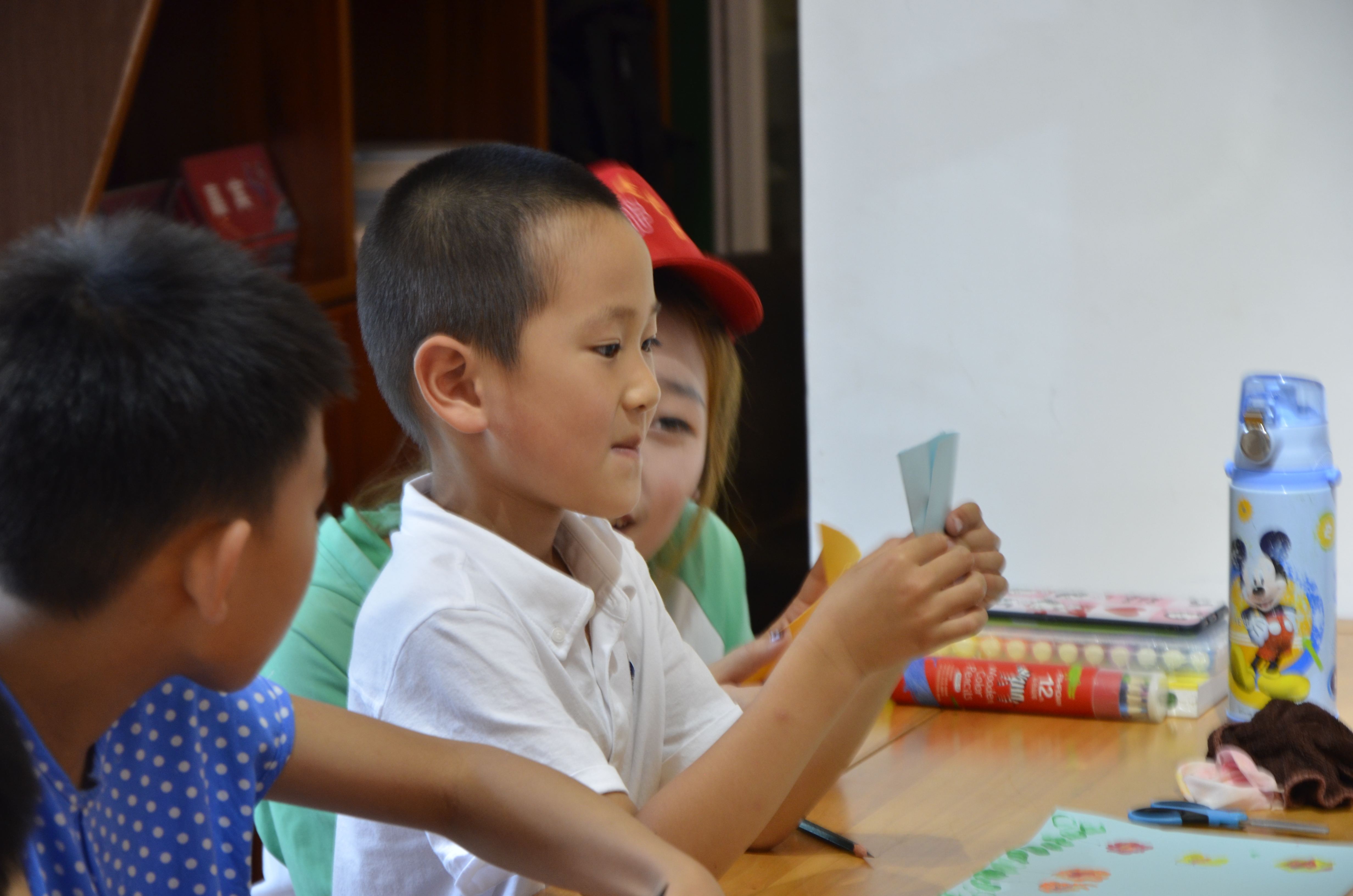 队员们用真心和微笑成功“破冰”,将此次交流课分为三个部分进行:先是为孩子们赠送了画笔、颜料等礼品,然后通过剪纸的手工课拉进来了与孩子们的距离,最后展示了自己在校的笔墨作品,用自己的大学经历“劝学”。队员们的生动课堂让孩子们欣喜若狂,纷纷与队员们合照留念。
