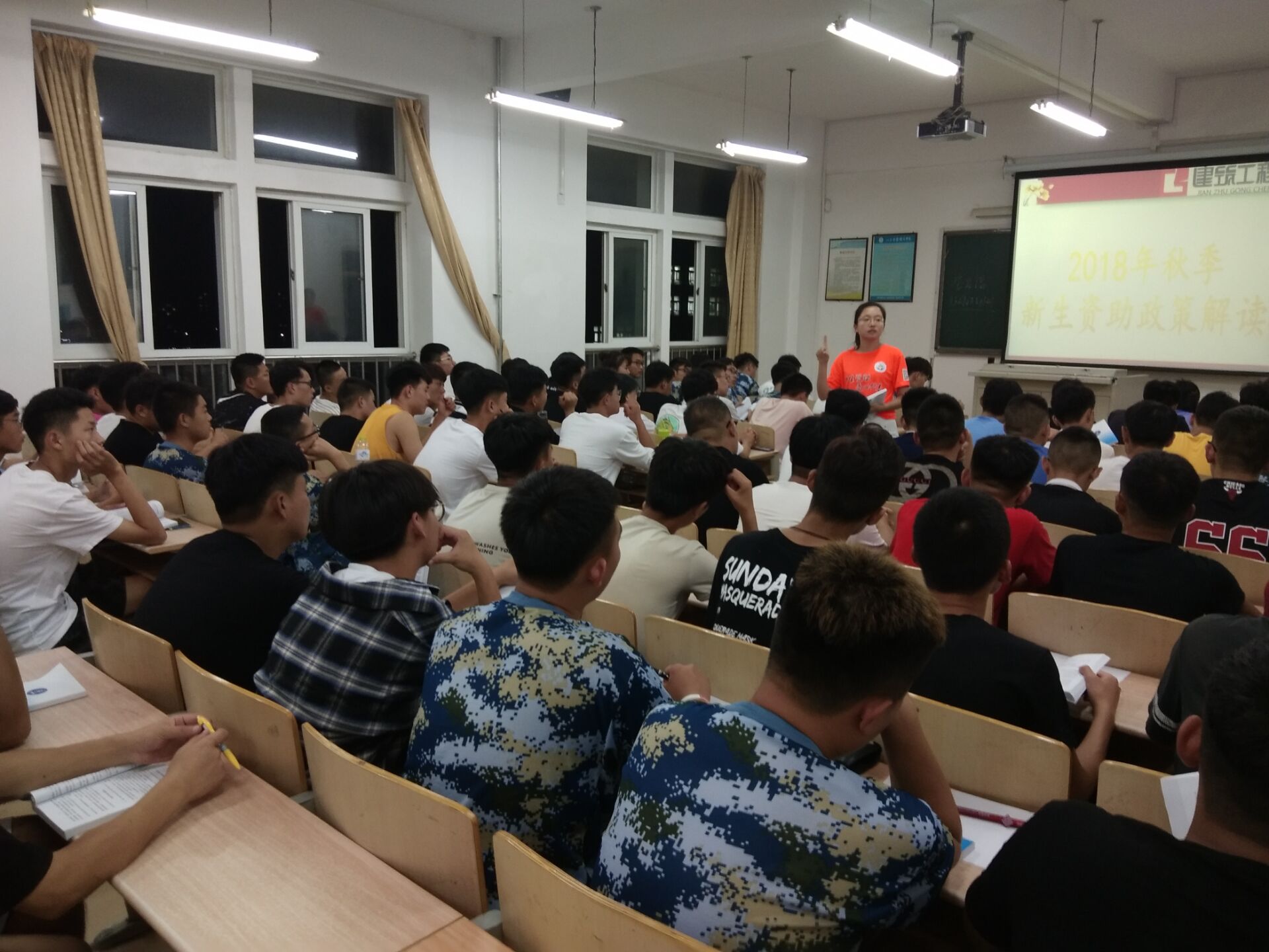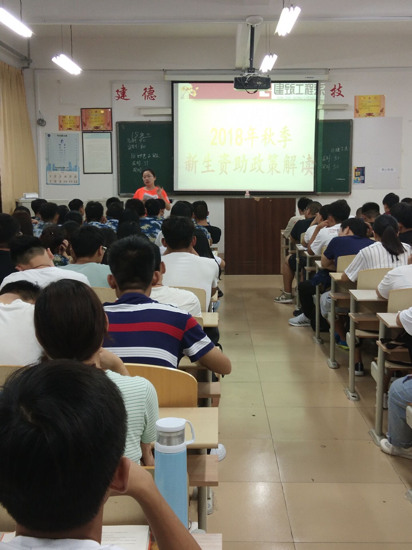 政策解读,加强新生教育。为使每位新生都能系统的了解到各级资助政策,新生军训期间,利用两天晚自习专门开设资助政策解读主题班会,由我系资助辅导员逐班进行资助政策讲解,并在这一过程中融入感恩励志教育。班会中,每位新生都听的十分认真,针对他们提出的若干问题,都一一进行了解答,获得了不错的反响。