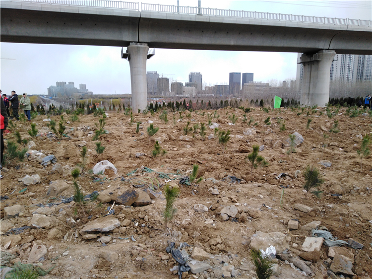 “我昔少年日,种松满东岗。”建筑系“小红帽”们伴着濛濛细雨、带着铁锹水桶徒步来到植树地点,一到目的地便投入到植树劳动中,自动结成劳动小组,相互配合着扶正树苗、回填泥土、围堰浇水,共同栽下油松200余株。据悉,本次植树的地点位于荣乌高速南侧,属于硬土多石地块,是高新区绿化项目的“棘手”地点之一,总面积达上百亩。建筑系将践行“绿色环保”理念由校内延展到校外,主动承担其中地况最差的一部分,为国土绿化、美丽家园贡献出自己的一份力量。