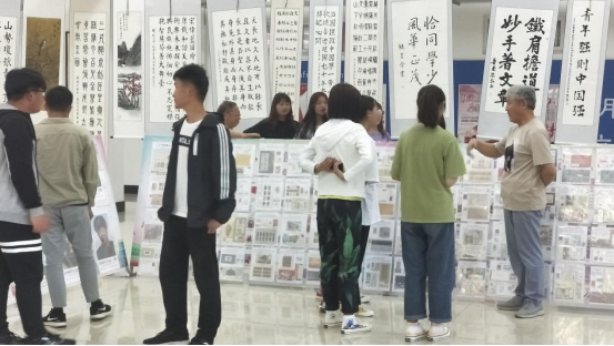 笔墨丹香,环境育人。建筑系打造特色团课,5月21日组织同学参观“迎祖国七十华诞,扬五四百年精神”为主题的集邮书画艺术展。这些集邮书画作品紧跟时代,立足当下、彰显正气,植根传统、推陈出新,主题鲜明、风格多样,既有壮美河山、花鸟林芷,又有人文风情,为我校带来了一场别样的艺术盛宴;笔走乾坤恢弘气,墨染中华四时香。书画人生社团指导老师,建筑系团总支书记王海涛表示此次书画展所呈现出的中国风骨、中国文化、中国审美、中国魅力,从一个侧面展现出学生书法爱好者深厚的文化底蕴,用笔墨丹青讴歌了伟大的祖国,奋力谱写筑梦路。17装饰2班马鸿宇参展后说:“展览非常震撼,一张张精致的邮票展现了着祖国的岁月变迁以及新时代的山河壮丽 。一幅幅书画作品展现出了新时代的文化精神内涵。同时也展现了当代大学生弘扬五四爱国精神。”