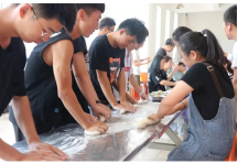 中秋节当天18级、19级留校的学生早早地集合,在图书馆前留下了三个班级和班主任的第一张大合照。之后三个班级在耿老师的带领下到一餐二楼包饺子,为这个大家庭准备中秋午餐。面对还没揉好的面团,熟悉的馅料,19级新生并没有表现出陌生的神情,反而是拿起擀面杖抓一把面粉开始工序,压面、擀皮、包饺子好不娴熟。慢慢的同学们开始融为一团,小花脸造型一个个的出镜了,奇形怪状的饺子一个个出炉了。饺子里面包裹的不止是班主任母亲般的浓浓爱意,更是这个大家庭其乐融融的体现。热腾腾的水饺出锅,一上午的劳动换来的不仅仅是为自己准备的中秋午餐,也是给自己给大家的中秋礼物,耿玉丽老师与大家共同举杯,同庆中秋。