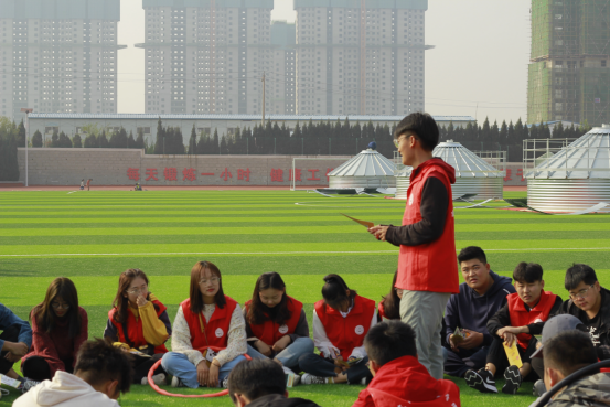 第二步,“打铁还需自身硬”,为了进一步增强广大学生自觉参与结核病防治知识的传播活动,增强体质,建筑系还组织了“防结核趣味运动会”,冷冰冰的草坪在一个个活力充沛的“小红帽”带动下,顿时生气勃勃。活动是团体合作类型的竞赛:“两人三足”、“蹲跳接力”、“同舟共济”、“携成一体” ,表明“小红帽”们奋进同行,防治结核病的毅力与决心。