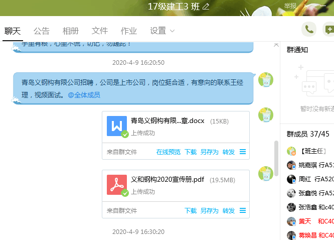受疫情影响,学校暂时无法正常开学。为切实做好学生疫情防控工作,扎实落实居家学生的各项管理,建筑工程系要求各班级组织开展线上班会,及时对学生的居家学习、安全教育、就业指导等进行教育管理。