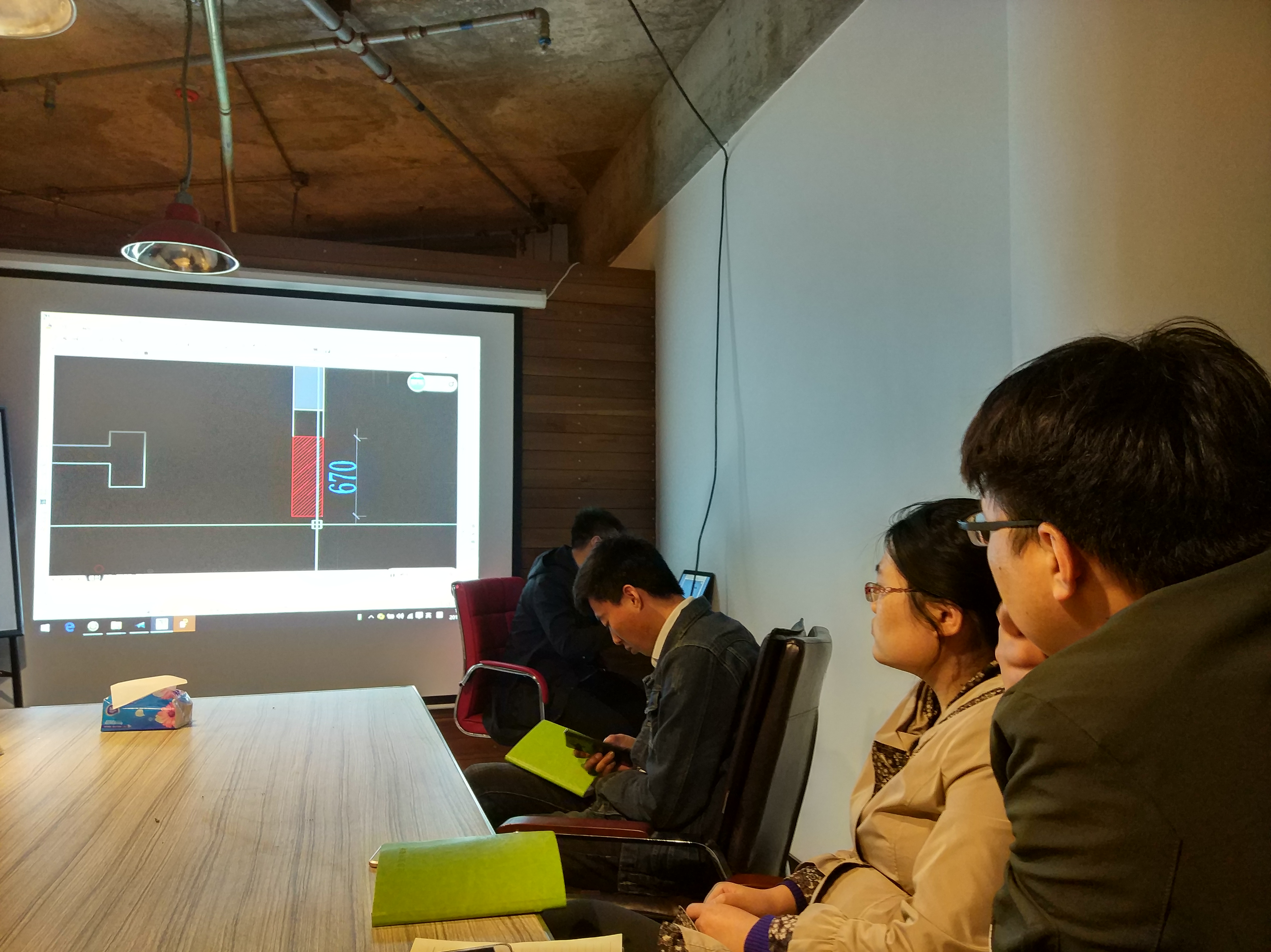 交流学习会分为两个部分:第一部分重在交流,周丹、魏庆森和桑媛老师与来自乾图室内设计工作室的设计师、业务员面对面交流,交换了各自对本行业现状与发展趋势的独到见解,了解了更多目前在室内设计实际工作中比较先进的设计理念和施工工艺;第二部分重在学习,由资深设计师吴老师主讲,以实际工程案例的形式对具体设计、软件应用、施工工艺、预算报价等方面,在工程全过程中遇到的问题做了详细的讲解。