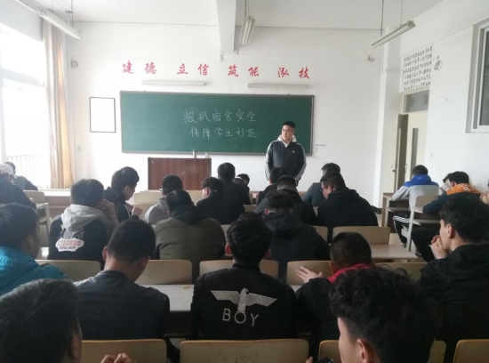4月3日下午,在2A教学楼召开以“狠抓宿舍安全,保障学习利益”为主题的宿舍安全教育大会,市政工程技术专业学生全体参加。
