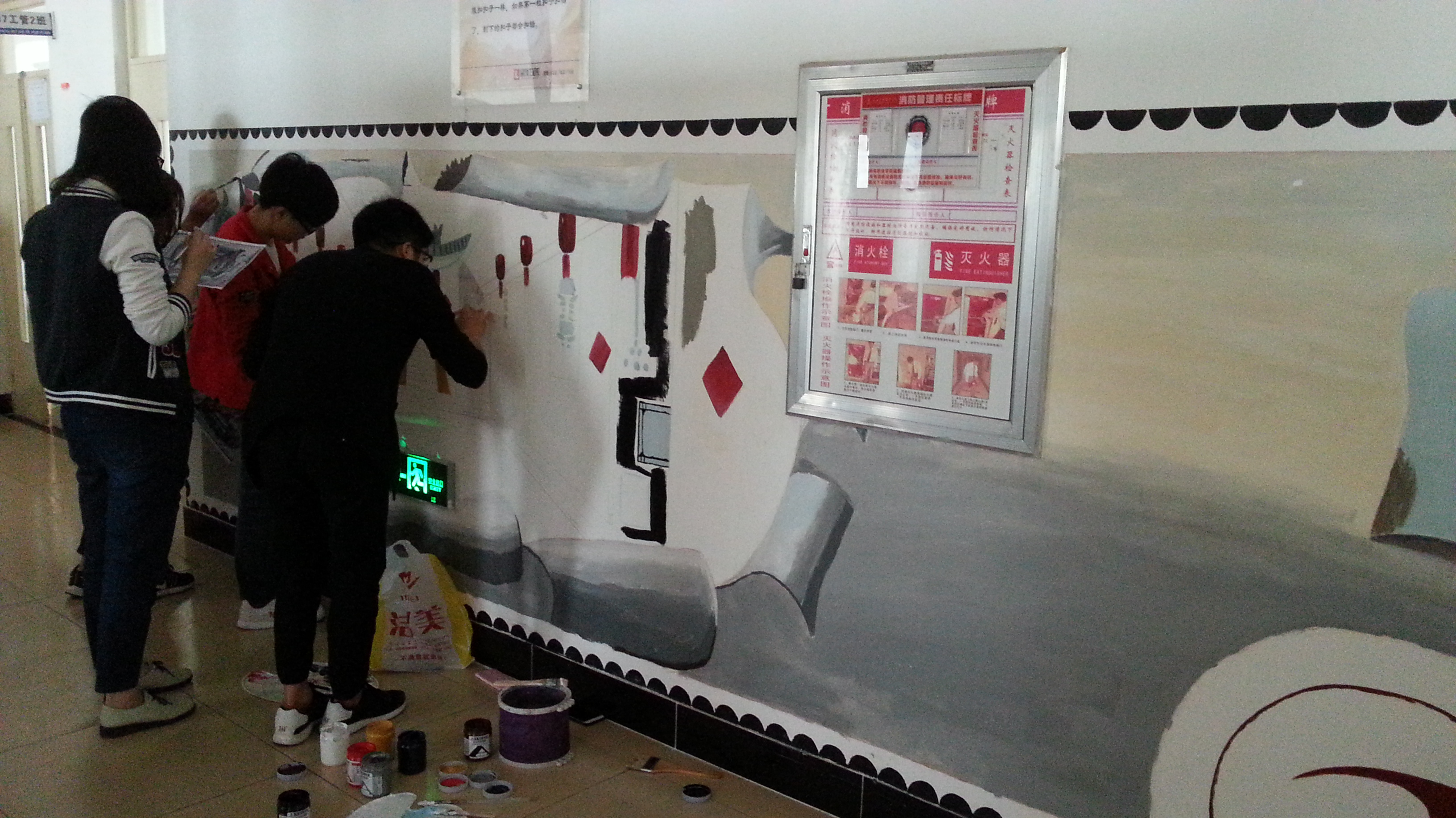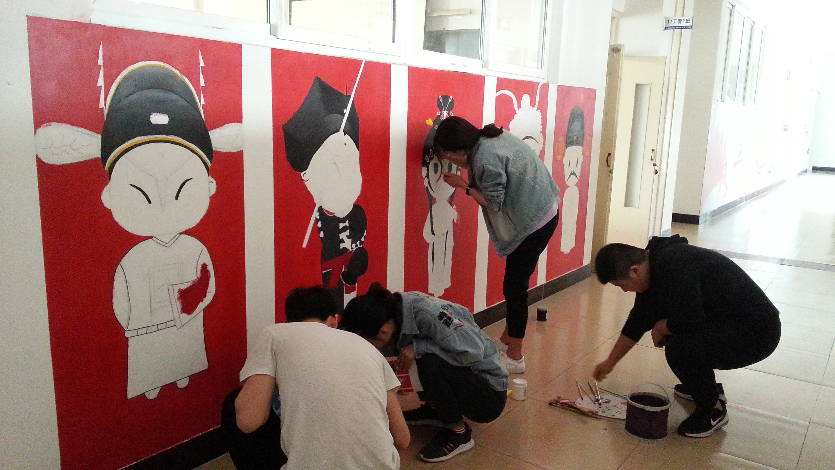 “让墙面活起来,让故事走进来”,为了给同学们营造一个美好舒适的学习环境,体现建筑工程系装饰班级的专业特色及独特风格,建筑工程系组织16级装饰专业的同学进行2a 教学楼五六层走廊墙体彩绘活动。