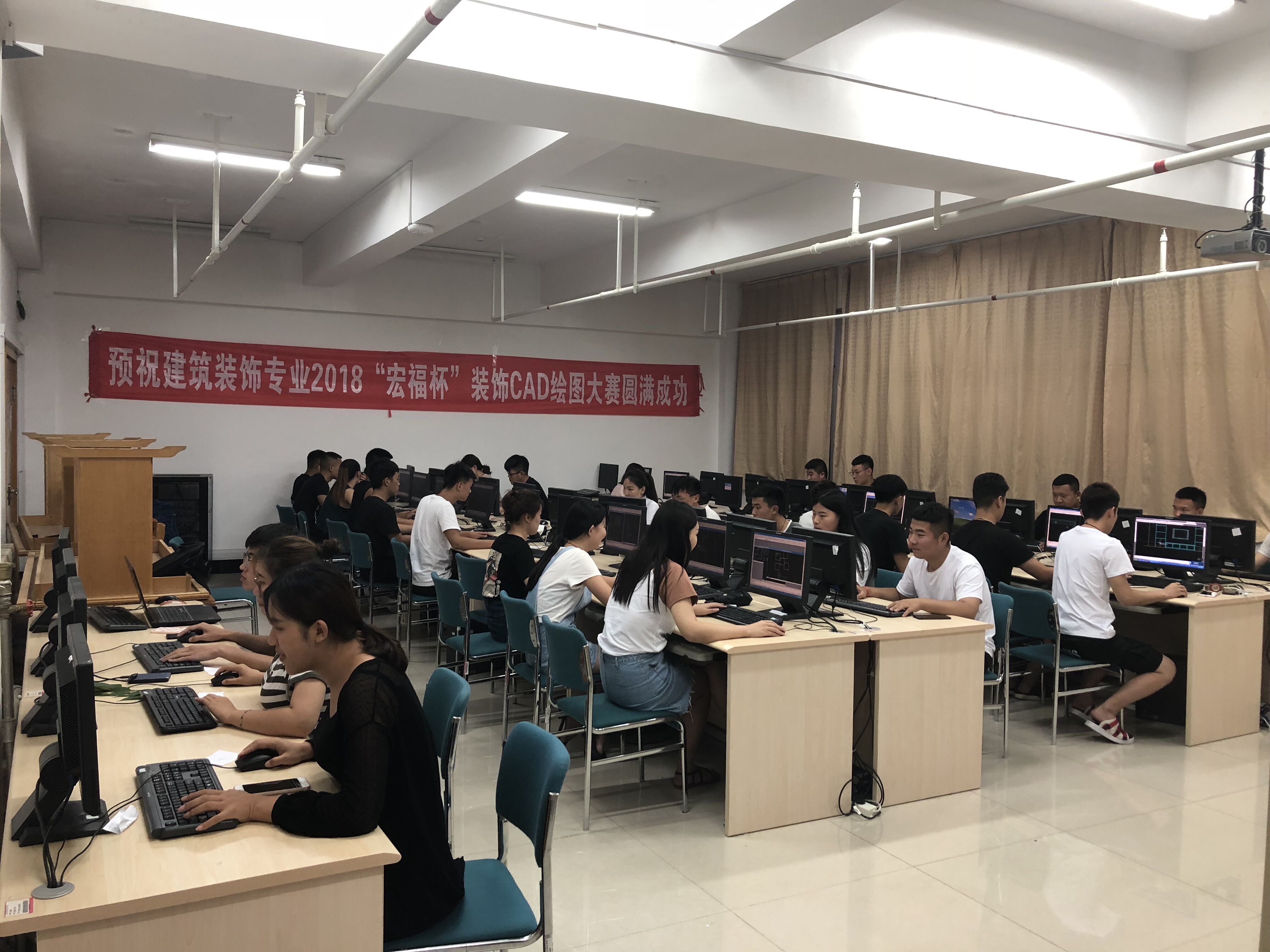 为了丰富同学们课余生活,提高同学们的专业技能,并检测同学们对专业知识的掌握情况。建筑装饰专业于6月28日成功举办2018“宏福杯”建筑装饰CAD制图大赛,,本次大赛面向装饰专业16级、17级全体在校生,经过层层选拔,最终有20组(60名)选手进入决赛。
