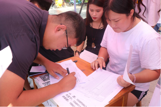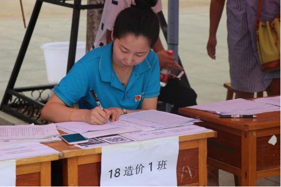 热情周到,忘我服务。迎新第一天,赵海成主任和孙龙湖书记便早早来到迎新现场,全体辅导员和班主任老师更是全程监督参与迎新工作,以确保迎新工作顺利完成。早上五点钟,学生会的同学们已经来到迎新地点进行布置,半个小时后全部迎新队伍便已全部到齐“严阵以待”。他们有的在门口辛苦地举着建筑工程系的牌子接应,有的在接待处耐心地接受家长和新同学的咨询,有的微笑着为学弟学妹办理手续……还有部分同学因场地有限一直默默地坐在帐篷后面等待着新同学办理完手续便带领他们去往宿舍区,由于接送的同学们都相当辛苦,一天结束平均每人下来来回跑了三四趟,甚至在最炎热的中午他们也主动积极地要求接送并细心地接过家长的行李,为他们送去了家人般的温暖。