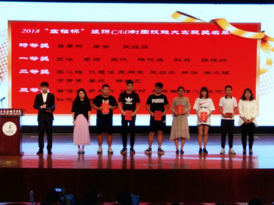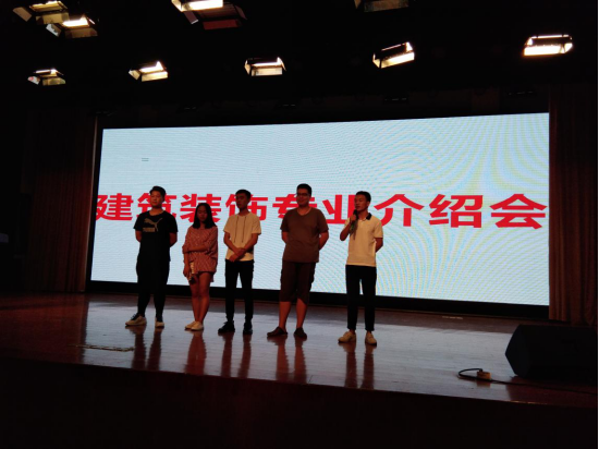 展装饰风采,现青春活力,经过充分准备,9月6日晚,建筑装饰工程技术专业(以下简称装饰专业)新生专业介绍会暨2018“宏福杯”装饰CAD制图大赛颁奖晚会在音乐厅开幕。参加本次活动的有装饰专业全体教师、2018级装饰专业全体同学、本次大赛的赞助企业烟台宏福装饰工程有限公司总经理孙信丽(以下简称孙经理)、大赛获奖同学等。