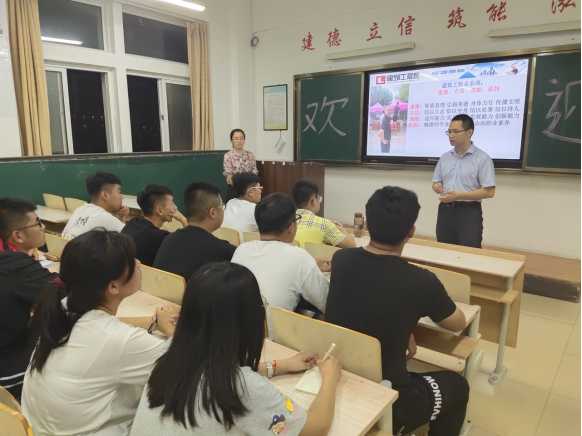 首先,黄老师对19级工管新生加入建筑工程系大家庭表示了热烈的欢迎,并邀请朱峰副主任致辞,为接下来三年的大学生活提出殷切希望。紧接着,黄老师以刚刚步入大学校园新生的角度出发,从新生的疑惑入手,结合自身的学习经历和教学工作经验,分别从从系部发展、师资力量、专业前景、优秀校友、校企合作、就业提升等方面对工管专业的发展前景优势、培养学生的目标定位、企业对人才的职业要求等进行介绍。同时,黄老师还强调新生们一定要时刻牢记“建德、立信、筑能、泓技”的系训,深刻理解其含义,重视人格品德的塑造,做德才兼备的高素质大学生。