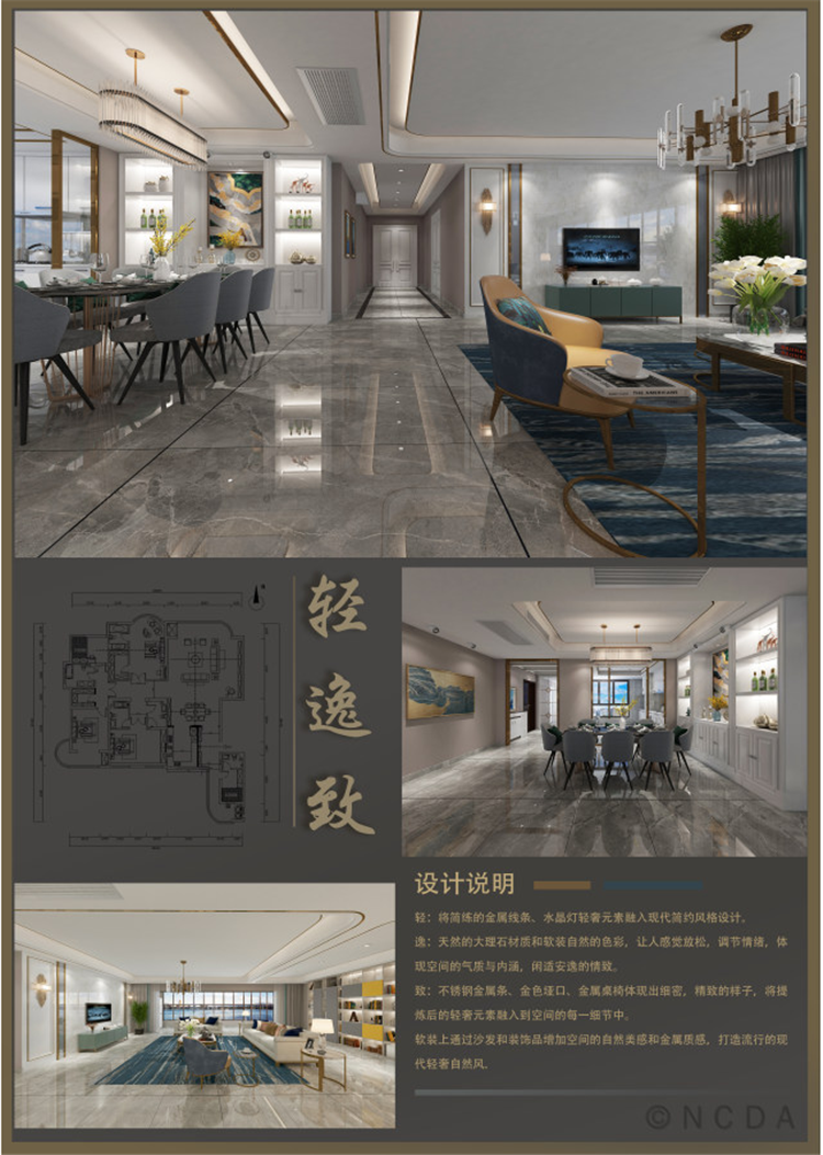 本次大赛总计879所学校报名参赛,共征集非命题类作品31897件,命题类作品4982件,角逐激烈。本次赛项“D环境空间设计”类,山东省内有四所高职院校获得一等奖,建筑工程系学生孙兵同学的作品《逸致居》斩获其一。“简约生活求韵致,而无旁逸斜出……”,该设计作品将简约、澹泊、韵致的生活诉求融入到环境空间设计中,寓情于景;设计风格采用现代简约轻奢风,空间设计类型采用虚拟空间设计,营造通透畅达的空间感;造型简约大气又不失格调,配以简约的金属线条、不锈钢垭口、简易家具、软装等,色彩上采用高级灰色调,给人以深邃、沉稳、辽阔无边的感觉。