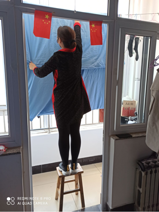 刘萌老师:帮同学们晒被子,是我们的分内之事,这样他们就可以没有后顾之忧的安心学习,我也希望他们回来可以有一个舒适的环境,学校的校园,有他们才会绚丽多彩。