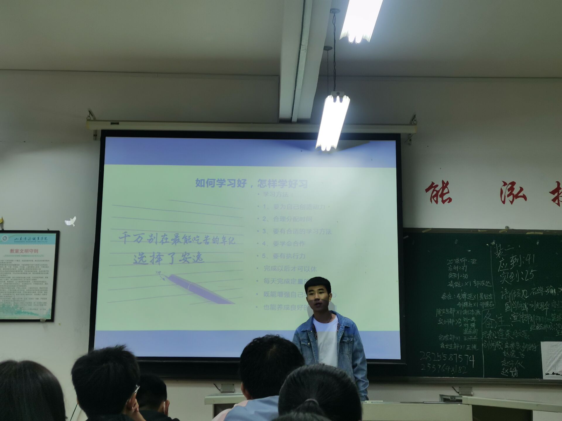 优秀学生代表丁鹏(18级环艺1班),分享了自己的学习理念和学习心得。“慢鸟要先飞”,要有恰当的自我认知,为人低调谦逊,做事情要提早做准备;“学会利用零散时间”,强化时间管理,充分利用好零散时间;“把娱乐作为给自己的奖赏”,时刻铭记学生身份,大学期间以学习为主,并注意劳逸结合;“做好大学规划”,规划要有目标、有执行、有反馈、有远见;“科学的学习方法”,根据功课内容、数量和自身知识基础情况,选取不同的学习方法;“提升学历,不浪费时间”,抓住各种提升学历的机会,根据自身情况选择自考本、专升本或考研;“注重细节,提升综合素质”,注意待人接物,做到文明礼貌,做到德智体美劳全面发展。