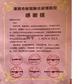 表扬信:志愿者刘寿伟 感谢信:志愿者姜秀坤