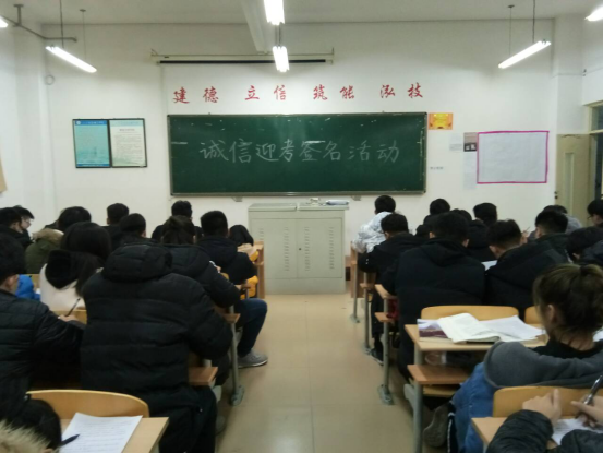 “凿井者,起于三寸之坎,以就万仞之深”。建筑工程系趁着同学们高涨的应试热情,于12月27日,在我校中心大道举行了“业精于勤荒于嬉,试重于诚毁于弊”的诚信签名活动。活动现场,同学们在条幅上郑重签下了自己的名字、立下了诚信考试的誓言。随后各班委组织同学们利用晚自习时间抄写保证书,并在保证书上签名。