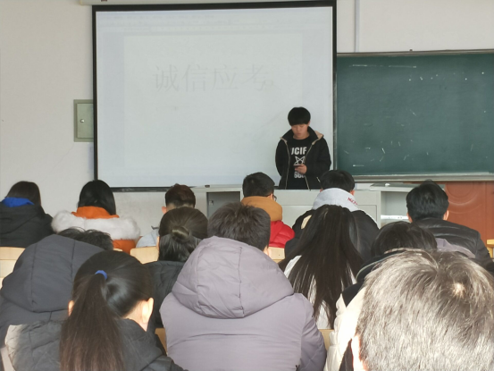 同时,组织者陈浩同学带领大家进一步学习了《山东商务职业学院学生手册(2017版)》中对于学生考试违纪作弊认定及处理办法,让同学们深刻认识到了学院对于学生诚信意识培养、“诚信应考”的重视及对作弊现象的严厉打击。刚柔相济的宣讲会令在场的同学们深受感染,逐步树立了诚信应考的理念。