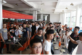 中秋节当天18级、19级留校的学生早早地集合,在图书馆前留下了三个班级和班主任的第一张大合照。之后三个班级在耿老师的带领下到一餐二楼包饺子,为这个大家庭准备中秋午餐。面对还没揉好的面团,熟悉的馅料,19级新生并没有表现出陌生的神情,反而是拿起擀面杖抓一把面粉开始工序,压面、擀皮、包饺子好不娴熟。慢慢的同学们开始融为一团,小花脸造型一个个的出镜了,奇形怪状的饺子一个个出炉了。饺子里面包裹的不止是班主任母亲般的浓浓爱意,更是这个大家庭其乐融融的体现。热腾腾的水饺出锅,一上午的劳动换来的不仅仅是为自己准备的中秋午餐,也是给自己给大家的中秋礼物,耿玉丽老师与大家共同举杯,同庆中秋。