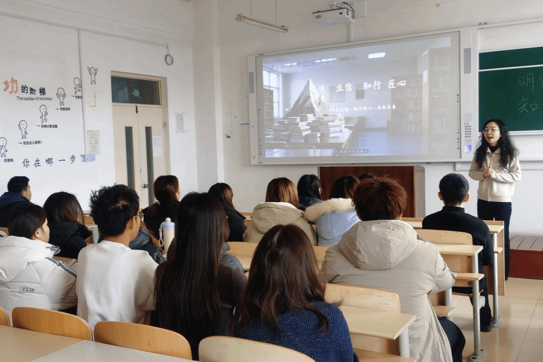 随后,师生共同研读校训内涵:“明德”源自《礼记・大学》,倡导彰显品德、探求真理;“立信”植根《论语》典籍,强调诚信立身、信融于行;“知行”传承王阳明知行合一理念,要求以知导行、以行践知;“匠心”呼应《考工记》技艺精神,倡导精研技艺、追求卓越。