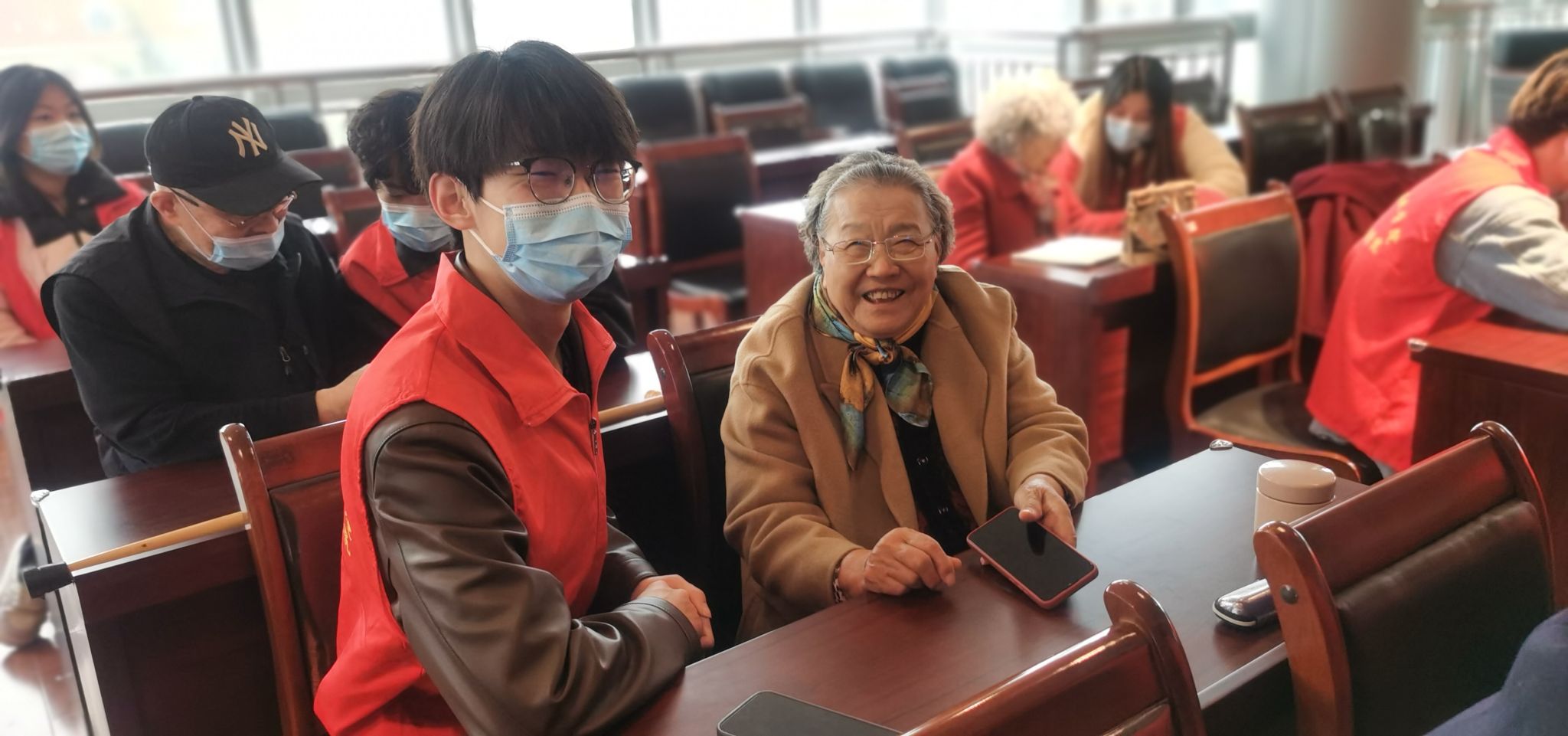活动现场氛围温馨融洽,志愿者们两两一组,一对一、手把手陪伴在老人身边,全程俯身耐心讲解。考虑到老人视力偏弱、接受速度较慢的特点,志愿者们将复杂的手机操作拆解为简单易懂的分步流程,重点讲解基础实用功能:从解锁手机、拨打接听电话,到微信语音发送、视频通话,再到线上便捷购物、搜索收听喜爱的戏曲音乐,逐一演示、反复指导。面对老人们提出的各类疑问,无论是操作失误、功能找不到,还是担心误扣费等问题,志愿者们都细致解答、耐心纠正,直到老人完全掌握操作方法。