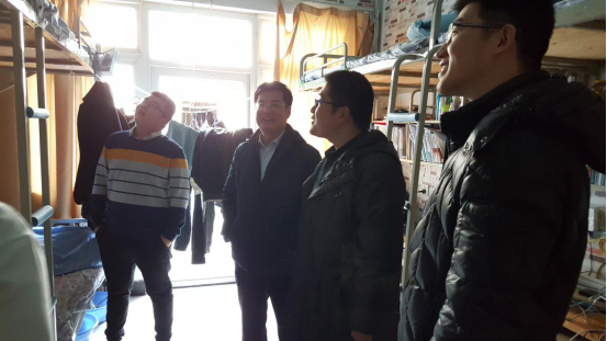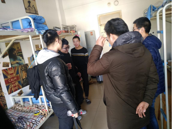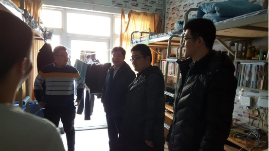 孙龙湖同志一行首先来到贵和苑楼C栋215宿舍,关切的慰问大家的考试情况,和蔼亲切地叮嘱大家的安全,暖暖的爱意使得16造价2班的杨祥激动地表示:“真没想到,这么冷的天,学校的领导老师还亲自走访宿舍,关心我们,这该是我们收到的最暖心的新年礼物啦!”“有爱心、懂感恩、肯吃苦、敢担当”这正是我商务学子的核心品质,是对山东商务职业学院高技能高素质人才培养品牌的最直接诠释。