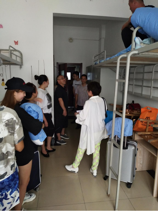 在活动中,建筑系教工党支部成员在赵海成同志、万礼同志、朱峰同志等领导下,走进5A宿舍楼一楼,走访18级新生宿舍,与学生家长亲切交谈,了解学生的生活、心理情况,细心叮嘱新生们刚入学,注意用电安全、财产安全、出行安全以及食品卫生安全等情况,帮助学生适应新环境。走访16级和17级老生宿舍,对同学们的宿舍卫生环境进行了细致地检查,并亲切地与学生进行了交谈,叮嘱同学们应养成良好的作息习惯、营造良好的宿舍氛围,同学之间应相互督促,共同进步。最后,党员教师鼓励同学们树立远大理想、珍惜大学时光,在新的一学期更加努力,更上一层楼。走访宿舍结束后,教工党支部在中心大道新生迎接点集合,查看新生迎接工作准备情况,并和学生一起进行迎新现场布置工作。