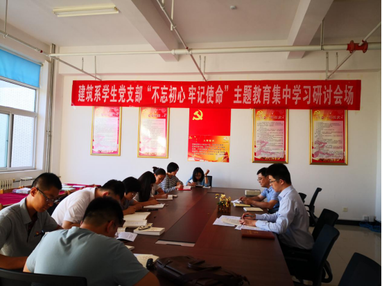 9月24日,建筑系开展“不忘初心、牢记使命”主题教育,集中研讨学习。学生党支部书记王海涛主持,孙龙湖、李森等学生党支部所属党员参加集中学习和研讨。