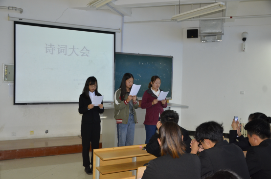 十九大胜利召开之际,建筑工程系为更好的传承中国经典文化、弘扬爱国情怀,建设文化校园,于10月22日,在图书馆111室举办“不忘初心跟党走,传承经典谱新篇”诗词吟诵会。同学们用饱含深情的朗诵,表达了对祖国的热爱,也用行动,庆祝党的十九大召开。