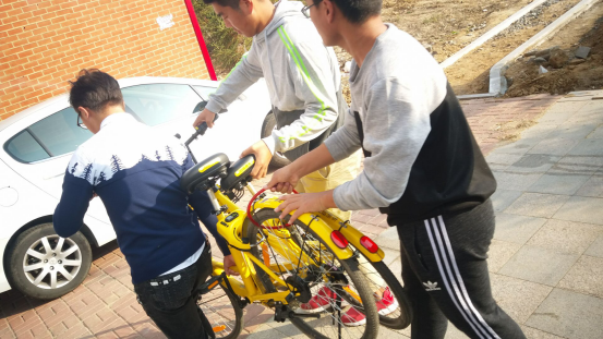 活动当天志愿者们很快进入状态。依据电子化信息技术,查看分布在学校里的共享单车,分组分方向分区域寻找停放在非指定区域的车辆。首先志愿者们集中将学校家属楼附近随意摆放在路口的小黄车进行了整齐划一的整理;其次把有问题的“小黄车”及时通过相关平台在线报修。同时,在活动期间,志愿者们及时劝导给共享单车上私人锁、进楼入户等不文明行为。志愿者们全力以赴整治“小黄车”的行动得到了校园保安的大力帮助,路过的老师、同学们对志愿者们的善举更是赞不绝口。