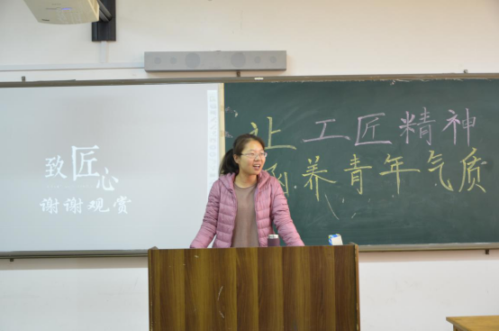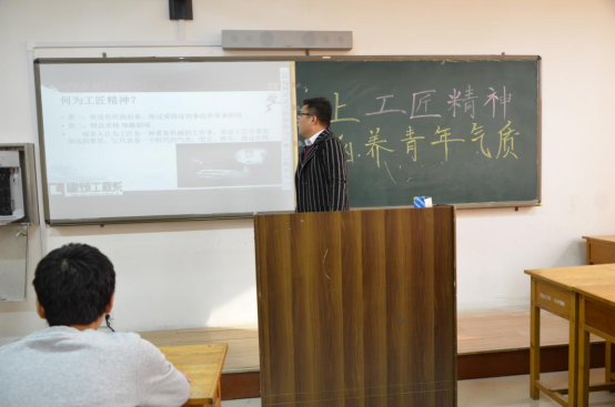 活动伊始,主讲人杨祥利用PPT向同学们介绍了什么是工匠精神,结合“大国工匠”胡双钱、周东红、管延安、孟剑锋、张冬伟、高凤林、顾秋亮等先进事迹,讲解了工匠精神的敬、严、专、精的四字标准,同时延伸出对“工匠精神”的“四点感悟”:一是对职业的热爱与专注,二是一丝不苟的态度和精益求精,三是品牌意识与创新精神,四是对“道技合一”境界的追求。多媒体展现的每一位高级技师平凡而又独特的双手都令在场同学深感敬佩。最后,由刘萌老师结合刚刚闭幕的第44届世界技能大赛,用学生们身边的模范典型曲笛,为同学们进行了“接地气”的补充,分析了当代大学生应如何学习并发扬工匠精神,提出要以实际行动去落实工匠精,使在场学生受益匪浅。