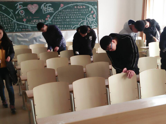 活动一开始,辅导员老师便对清扫工作做了分配,三支队伍带着笤帚、簸箕,抹布来到各自分管的不同区域,秉着不怕脏不怕累的信念,“撸起袖子加油干”,将桌椅板凳上字迹、污渍,卫生死角等“小怪兽”一一消灭干净。整个清扫过程历时了一个多小时,建筑系的义工和志愿者们虽满头大汗,看着自己的劳动成果——焕然一新的教室,却露出会心的笑容,给港城的春天增添了一抹青春与活力。