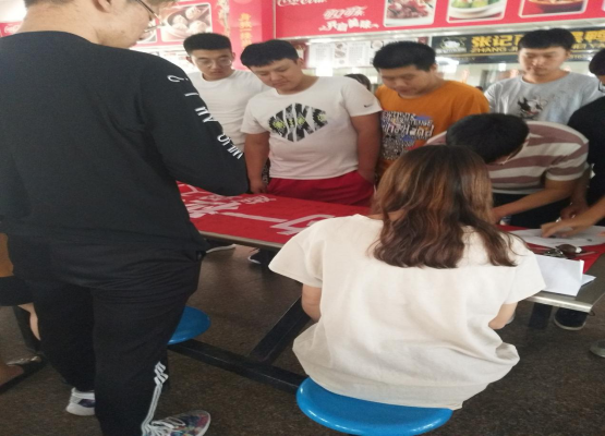 为大力提倡文明用餐的良好风气,培养健康文明的餐饮文化,增强广大同学节约粮食、爱惜粮食的意识,6月3日,17级建设工程管理二班的同学们在第二餐厅一楼举办了“节约一粒米 拯救一方人”-——“光盘行动”签字活动。