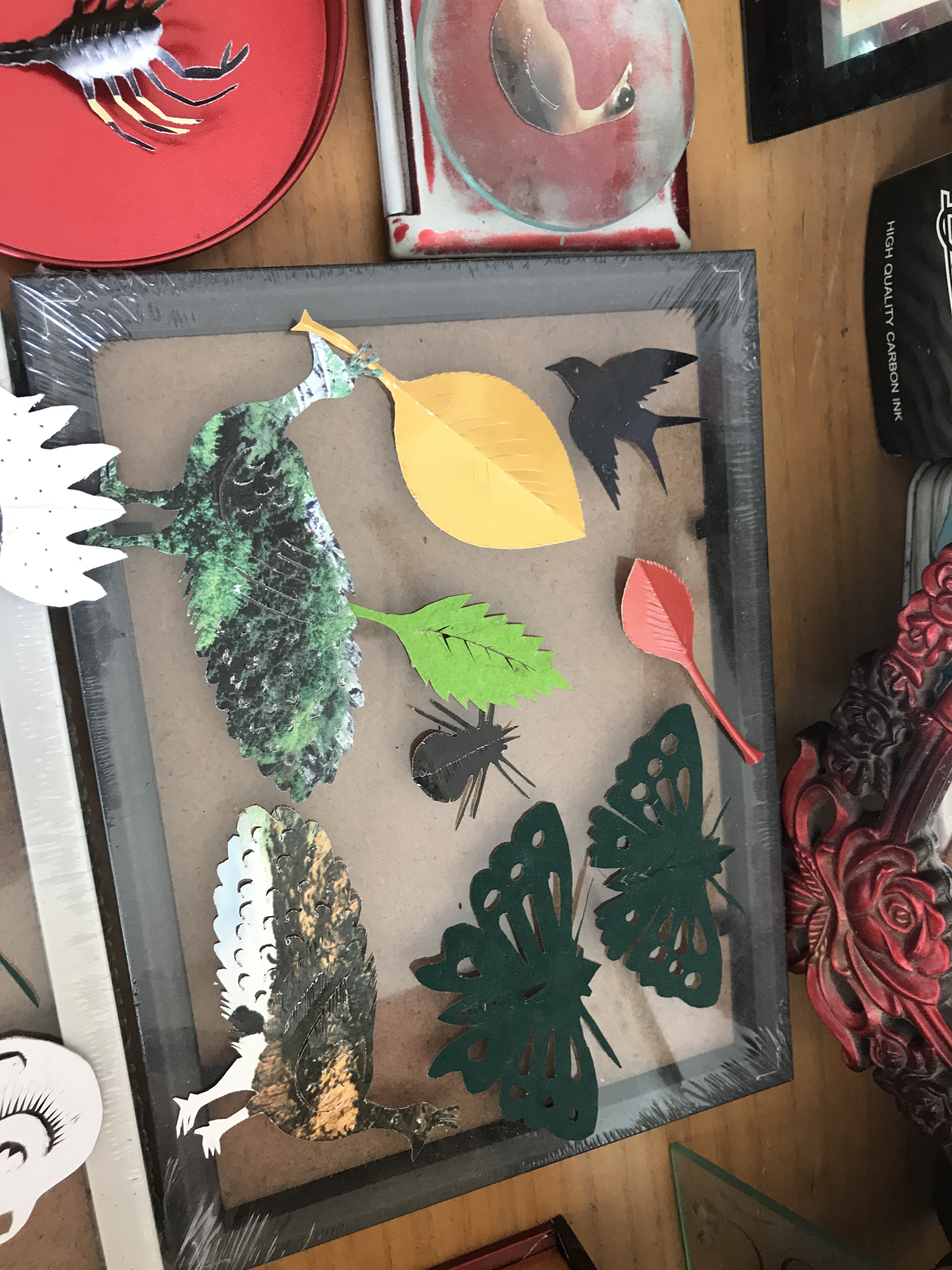 一进门,战大爷就热情地带领我们参观了他近年来的作品,墙上、桌上、纸盒里满满一屋子,小到蚂蚁、昆虫,大到骆驼、仙鹤,全都栩栩如生、活灵活现,仿佛置身于艺术的殿堂。
