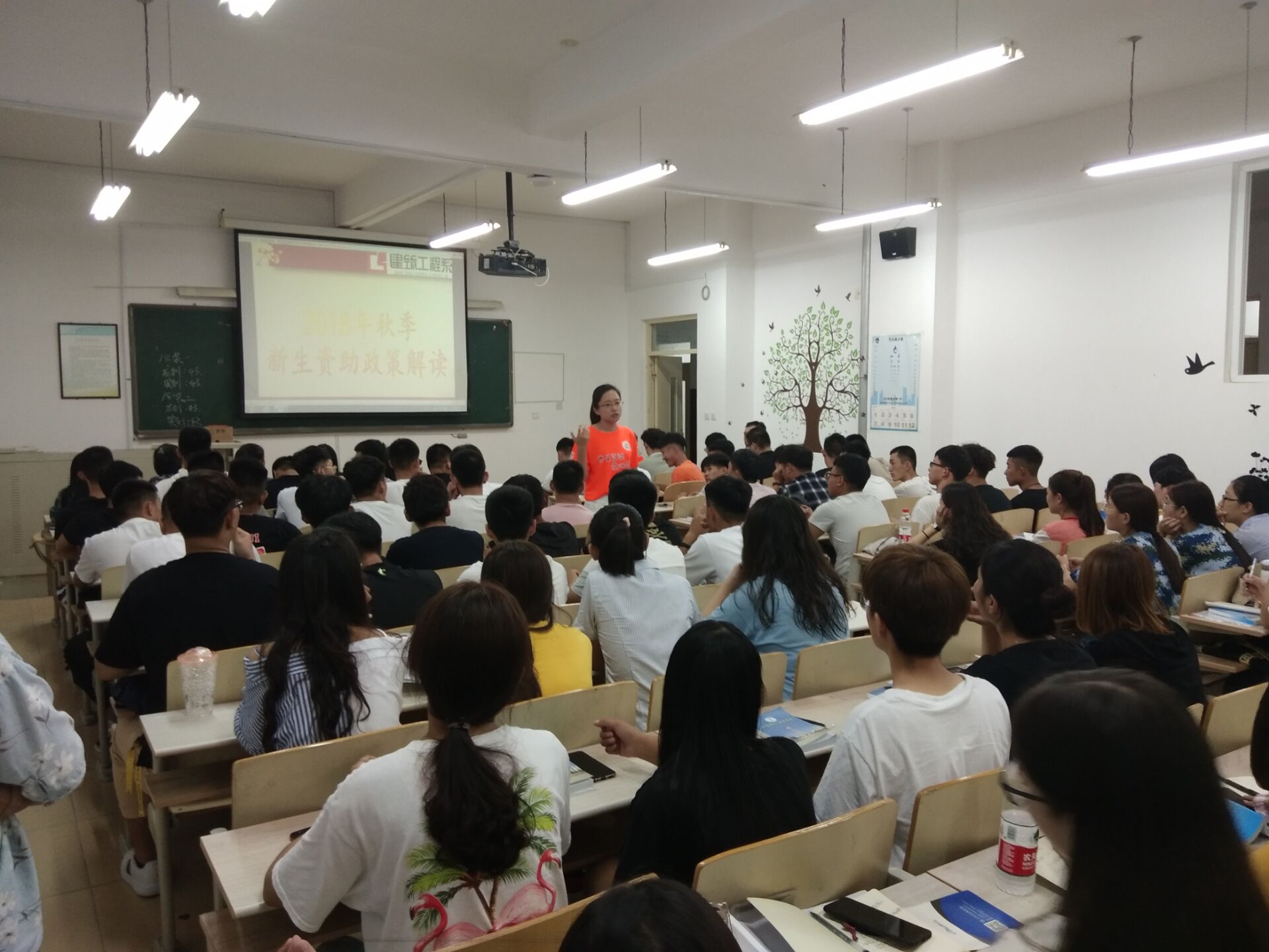 政策解读,加强新生教育。为使每位新生都能系统的了解到各级资助政策,新生军训期间,利用两天晚自习专门开设资助政策解读主题班会,由我系资助辅导员逐班进行资助政策讲解,并在这一过程中融入感恩励志教育。班会中,每位新生都听的十分认真,针对他们提出的若干问题,都一一进行了解答,获得了不错的反响。