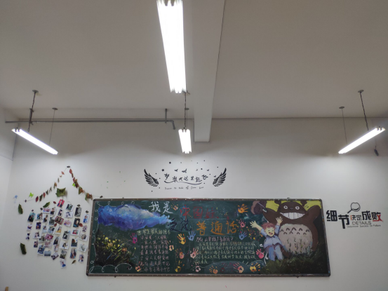 “墙依旧没有变,他只是住进了你心里”。教室是学习的主战场,良好的教育教学环境是同学们学习的重要保障,也是班级良好班风的形成的基础,连续三届举办的教室文化装饰活动不仅受到了同学们的欢迎,老师们也给出了高度评价,不仅让同学们充分发挥个人特长,还强化了习总书记对于当代大学生的影响,真正将自己的专业优势赋予时代特色。(王一兰)