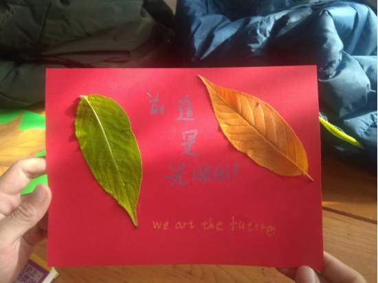 “月冷天风吹,叶叶干红飞。”建筑系的“有心人”们回归自然,将信手拈来的落叶、花瓣带到活动现场,配合彩纸与雅文雅句,一张张或清新淡雅,或色彩斑斓,抑或活泼可爱的书签便呈现在眼前:有形象逼真的树叶书签,有憨鞠可爱的动物书签,有用水粉吹墨勾画出各种图案的书签,有油画制作成的各种图案的书签等等。还有些学生添上自己的手工作品,使书签更加有立体感:简单的彩虹爱心在树叶纹路的映衬下仿佛敞开的心扉“当你不再害怕 你就会得到想要的一切”;两片嫩嫩的树叶搭配红色卡片展现出一片勃勃生机;枣红色的“叶子鱼”搭配粉色的花,仿佛鱼儿游在吐露出片片荷花的池塘里,美不胜收......自己喜欢的书籍配上自己亲手做的书签,在这静好岁月,不知不觉书已读过半。