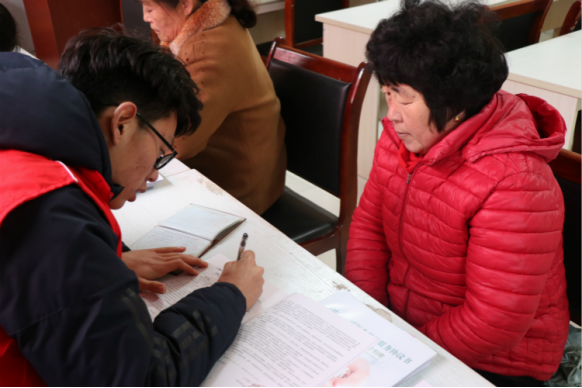 本次下乡义诊活动作为双方合作育人的首次尝试,对缺乏专业医学知识的志愿者们来说是一次不小的挑战,为此,建筑系“小红帽”也下了“苦功夫”,利用课余时间,经过一个周的培训学习之后,最终上岗。在活动过程中,面对蜂拥而至的村民们,“小红帽”们和义诊专家们分工有序、忙而不乱,有的在引导、维持秩序,有的辅助医生耐心向就诊的村民进行详细询问、记录病情、了解他们的生活习惯,为贫困群众提供关于腰腿疼,心脑血管疾病预防,感冒预防,高血压、糖尿病饮食等方面的健康咨询,有的帮村民免费测血压,有的在医生指导下,帮助他们填写家庭医生协议的基本信息,有的则帮助医护人员分发免费药品和健康小常识宣传单等科普资料。活动中遇到听力障碍的老人,志愿者们将信息写在纸上,认真与老人核对,协助医生们完成体检工作。在多方努力之下,本次义诊活动顺利结束。