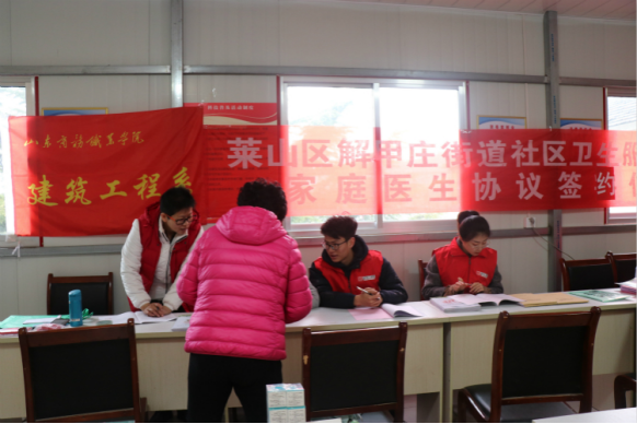 为了弘扬社会志愿服务精神,充分发挥高校服务社会功能,强化学生思想道德素质的培养、发挥志愿服务精神,践行“有爱心、懂感恩、肯吃苦、敢担当”的商务学子核心品质,建筑工程系团总支于3月13日前往莱山区解甲庄镇的莱山区第三人民医院举行挂牌仪式,并举办了下乡义诊的志愿服务活动,为“健康莱山行”增砖添瓦。