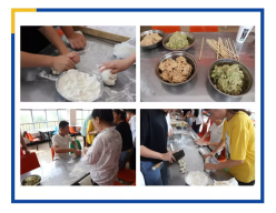 中秋节当天18级、19级留校的学生早早地集合,在图书馆前留下了三个班级和班主任的第一张大合照。之后三个班级在耿老师的带领下到一餐二楼包饺子,为这个大家庭准备中秋午餐。面对还没揉好的面团,熟悉的馅料,19级新生并没有表现出陌生的神情,反而是拿起擀面杖抓一把面粉开始工序,压面、擀皮、包饺子好不娴熟。慢慢的同学们开始融为一团,小花脸造型一个个的出镜了,奇形怪状的饺子一个个出炉了。饺子里面包裹的不止是班主任母亲般的浓浓爱意,更是这个大家庭其乐融融的体现。热腾腾的水饺出锅,一上午的劳动换来的不仅仅是为自己准备的中秋午餐,也是给自己给大家的中秋礼物,耿玉丽老师与大家共同举杯,同庆中秋。