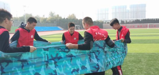 第二步,“打铁还需自身硬”,为了进一步增强广大学生自觉参与结核病防治知识的传播活动,增强体质,建筑系还组织了“防结核趣味运动会”,冷冰冰的草坪在一个个活力充沛的“小红帽”带动下,顿时生气勃勃。活动是团体合作类型的竞赛:“两人三足”、“蹲跳接力”、“同舟共济”、“携成一体” ,表明“小红帽”们奋进同行,防治结核病的毅力与决心。